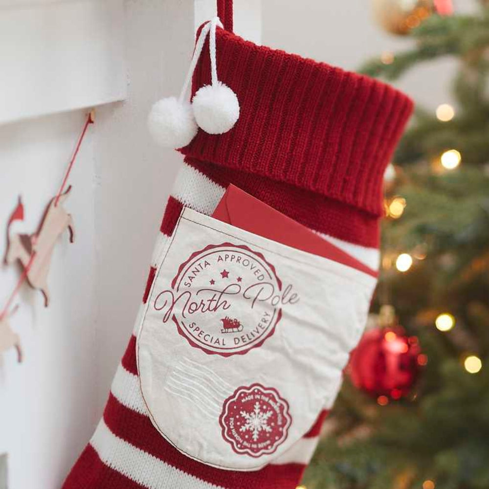 Denne traditionelle dekoration er perfekt til at hænge over pejsen og har en ekstra lomme, hvor de små kan lægge deres brev til julemanden.