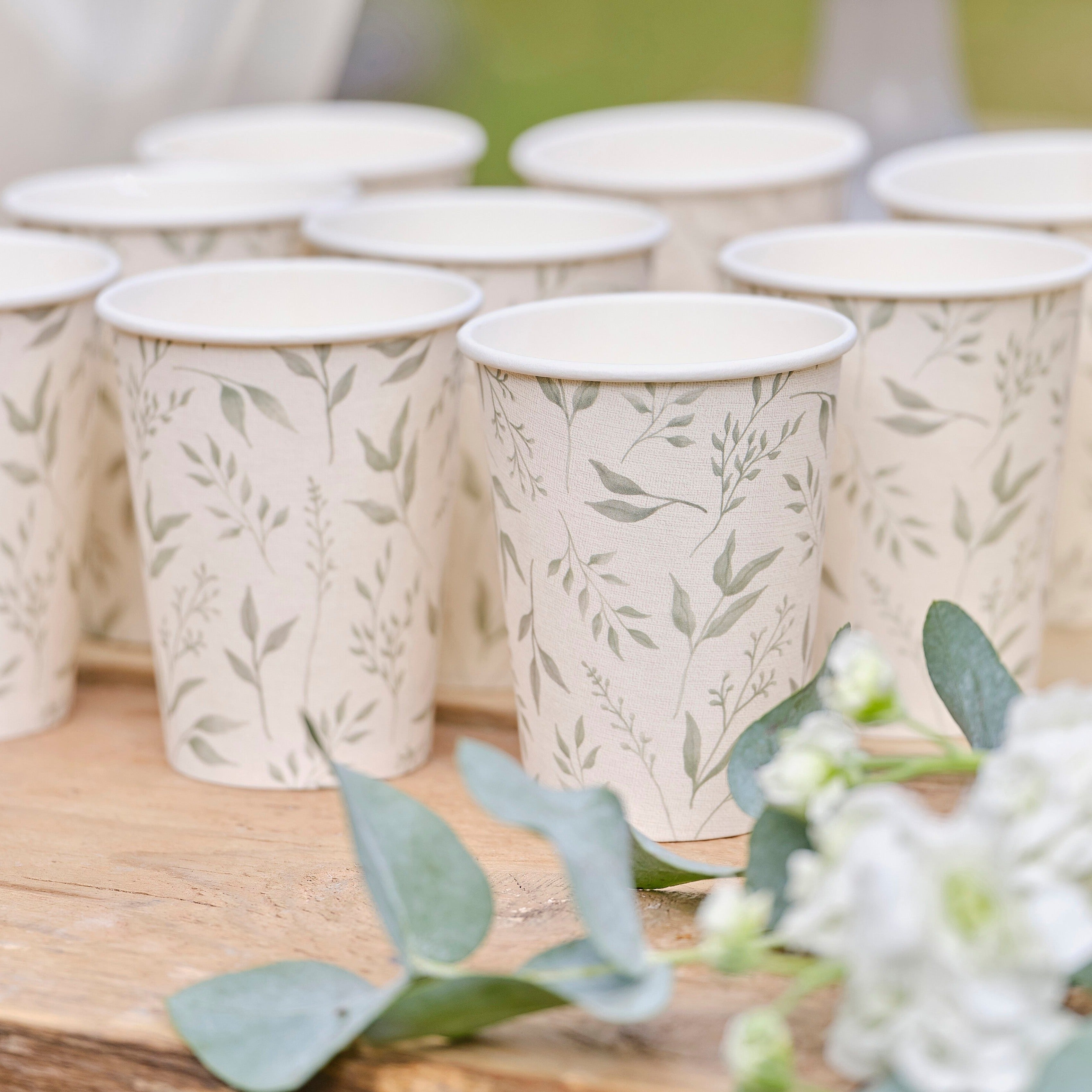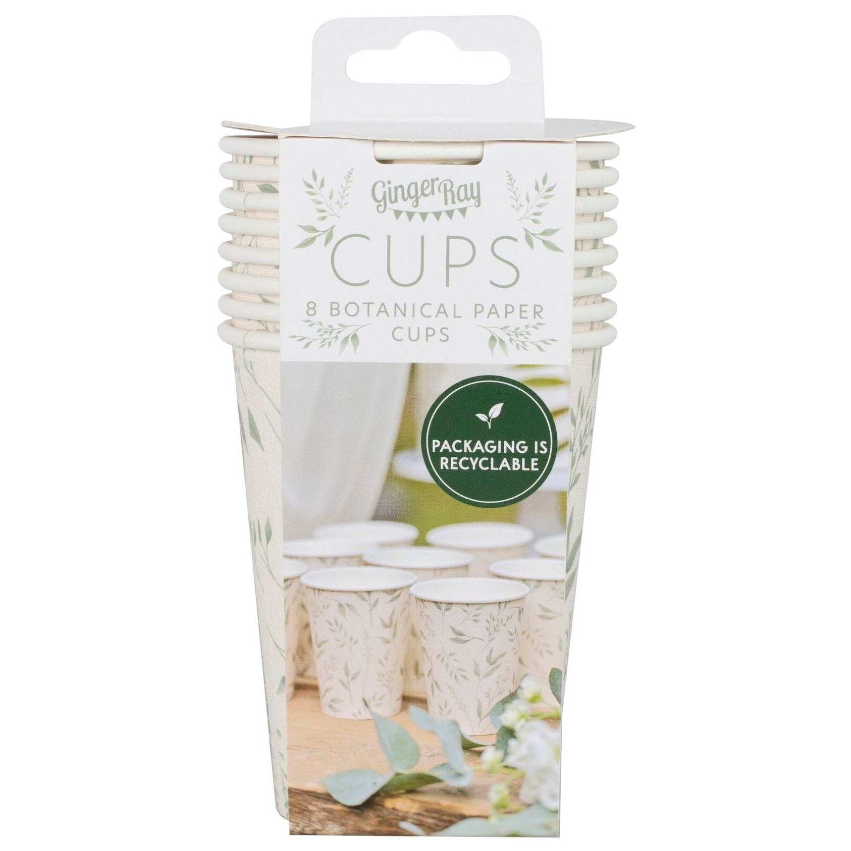 Smukke hvide og grønne dåbspapirkopper fra Gingerray.