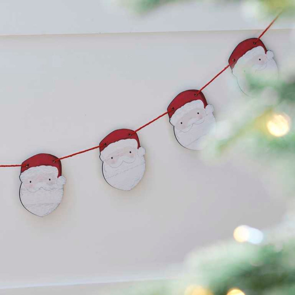 Giv dit hjem et festligt præg med denne charmerende trækrans med julemanden.