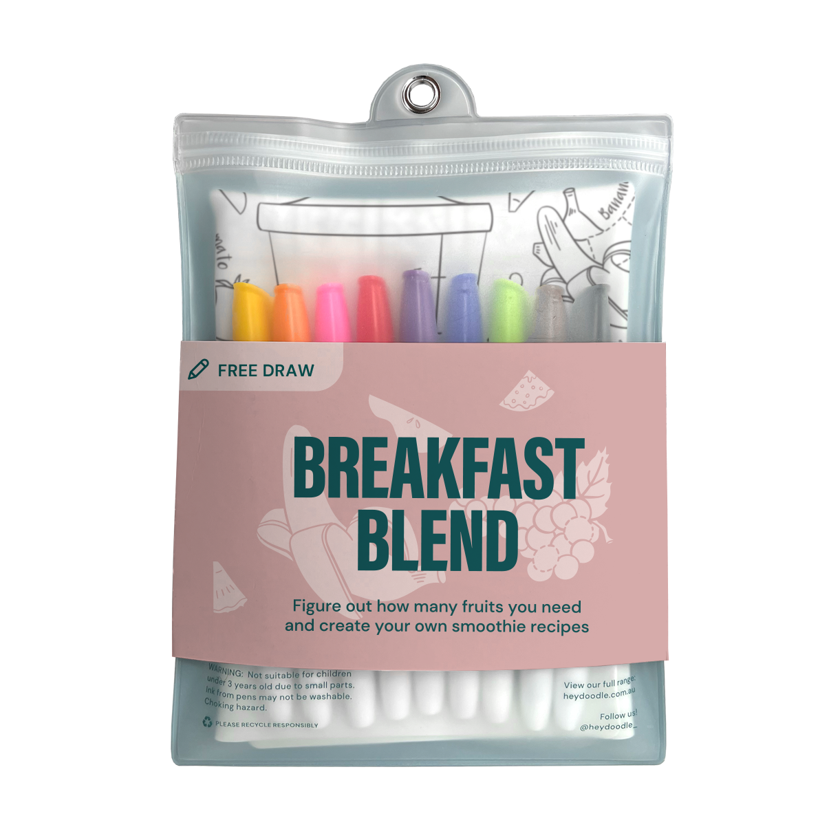Måtten giver dig mulighed for at tegne og farvelægge en række forskellige frugter, grøntsager og deres sammensætninger i en stor A3-blender.