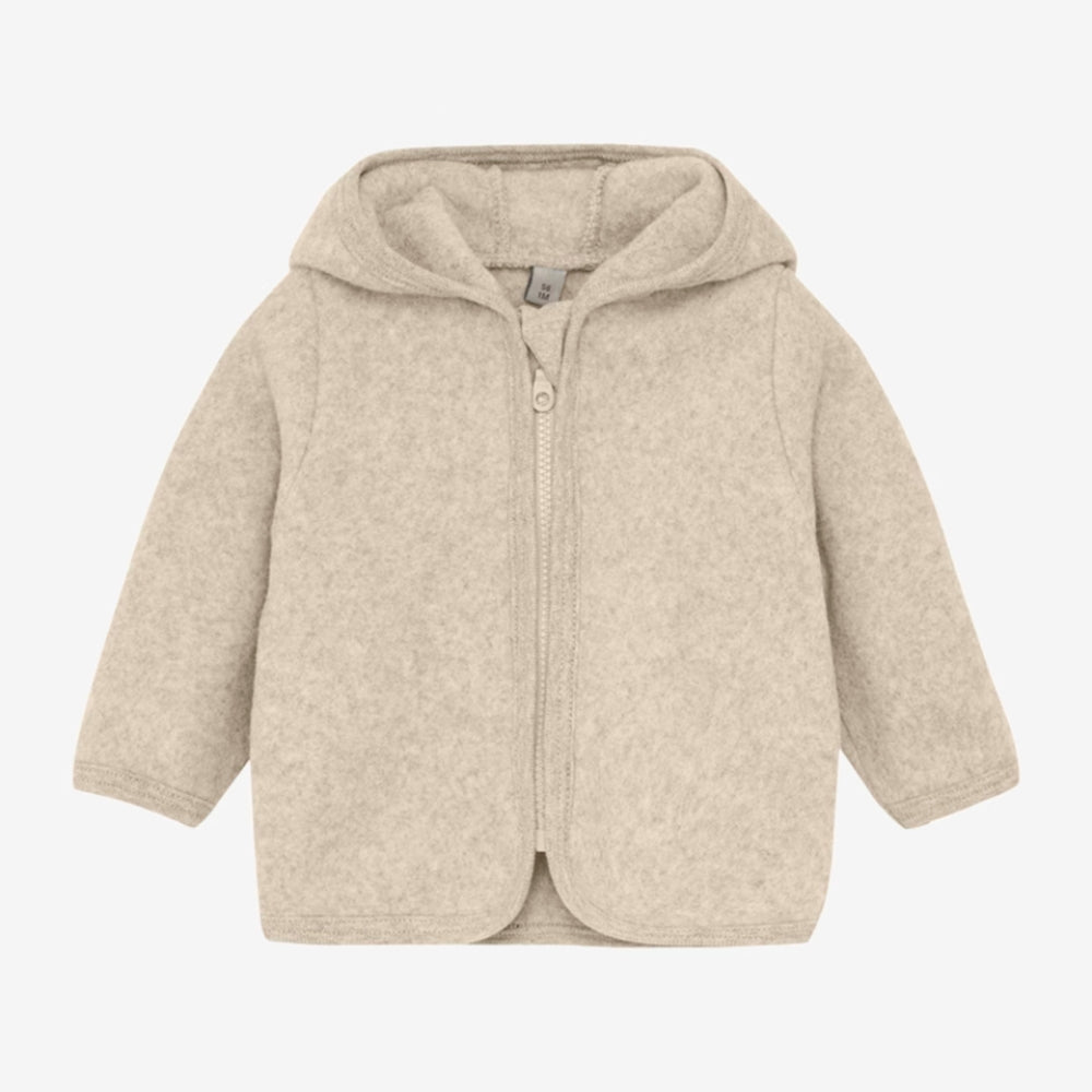 Camel Melange fleece babyjakke med hætte fra Huttelihut.