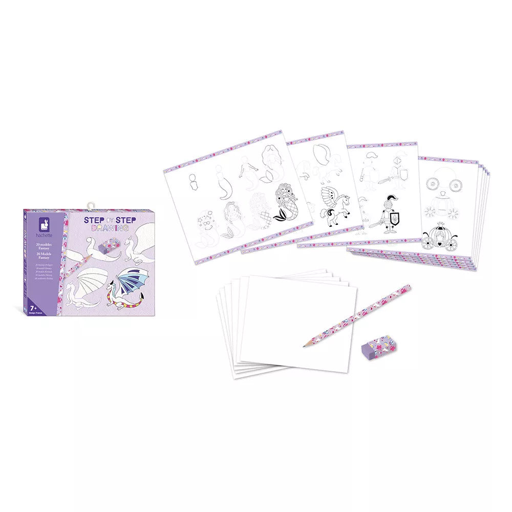 Kreativt sæt Step by Step Drawing for Kids Fantastic Creatures fra det franske mærke Janod.