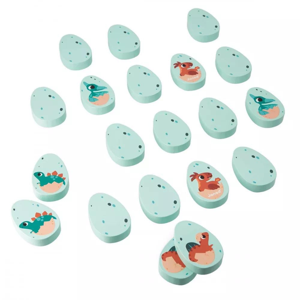 Et memospil i træ fra Dinosaurs-kollektionen fra det franske mærke Janod.