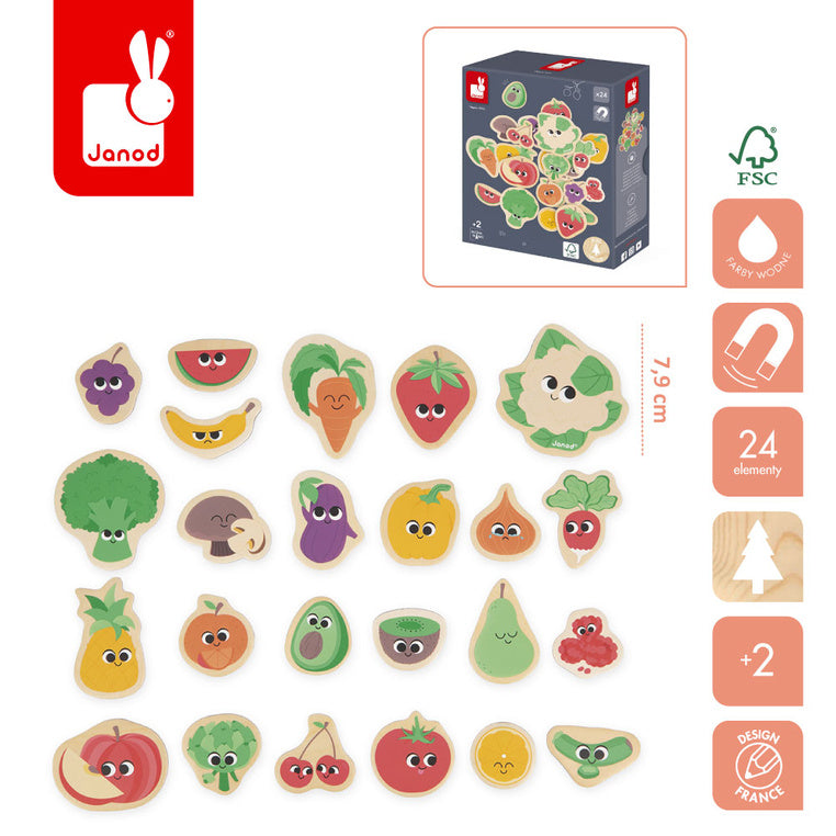Janod Træmagneter Frugt og grøntsager 24 stk.