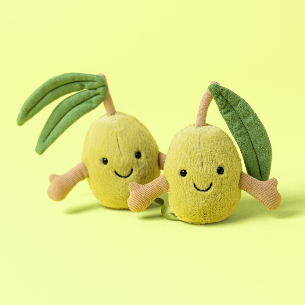 Krammedyret Jellycat fra Amuseables-serien er en bedårende olivenduo, der straks bringer et smil frem på læberne og bare venter på at blive krammet.