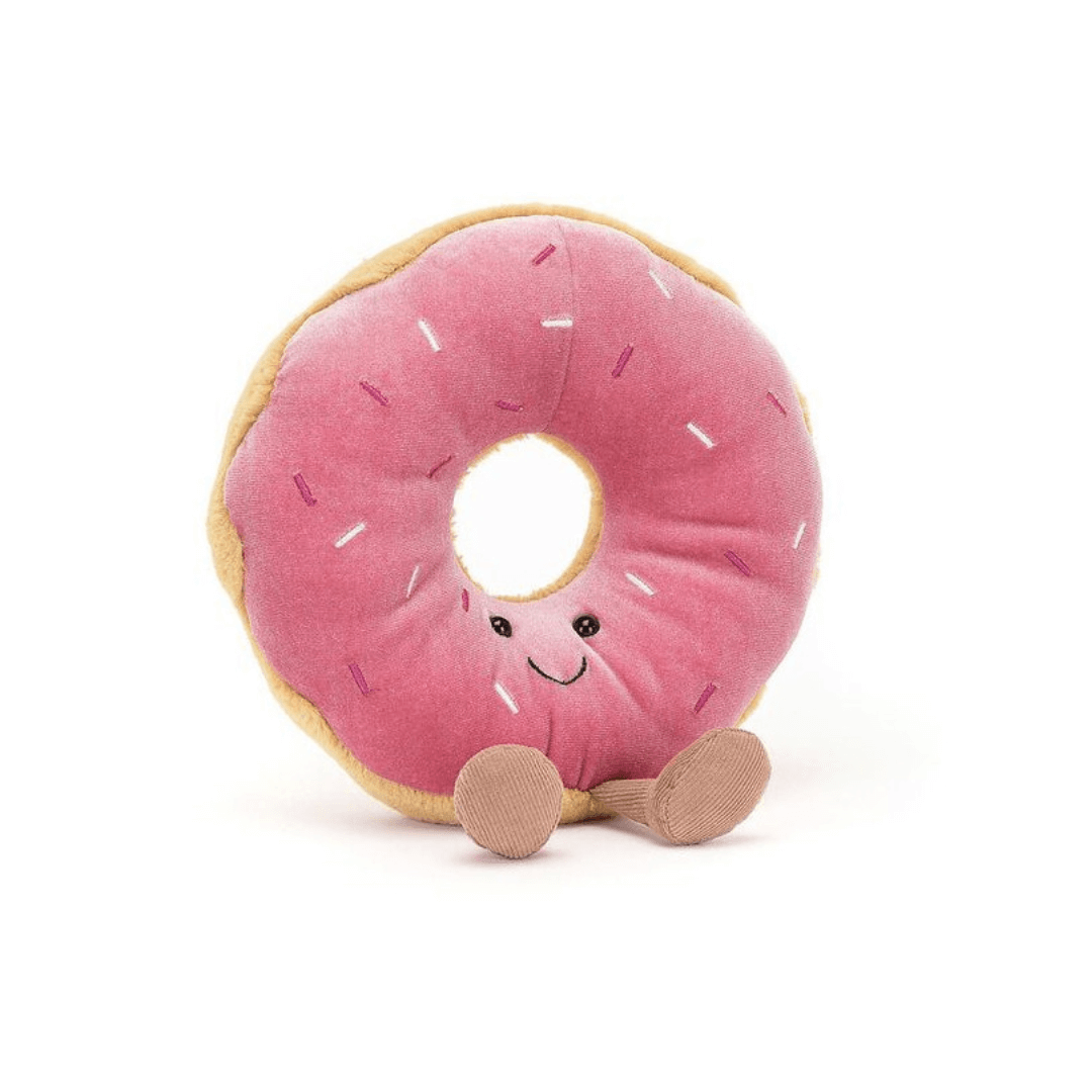 Happy Donut with a Hole-maskotten fra Jellycat er en usædvanlig plys-snack, der vil underholde og glæde ethvert barn.