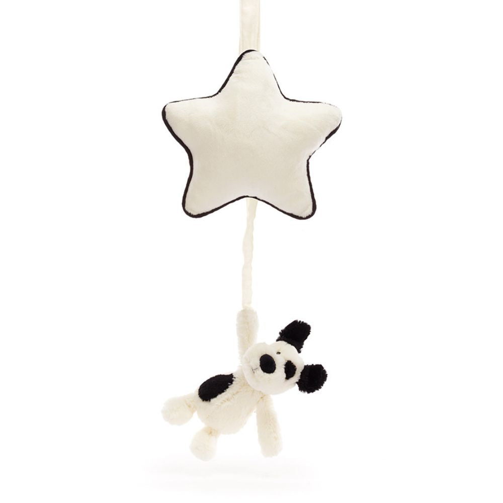 Du skal blot fastgøre Jellycat-musikæsken til vuggen, bæreselen eller barnevognen og trække i stjernen for at høre en beroligende vuggevise, der beroliger babyen og hjælper den med at falde i søvn.