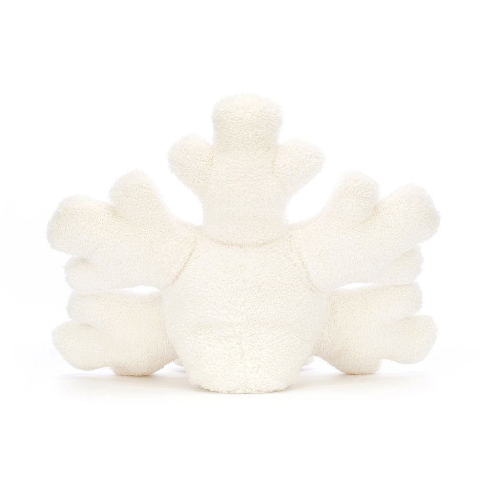 Jellycat Snowflake-maskotten er et sødt krammedyr med kullerøjne, et charmerende smil og seks bløde arme.