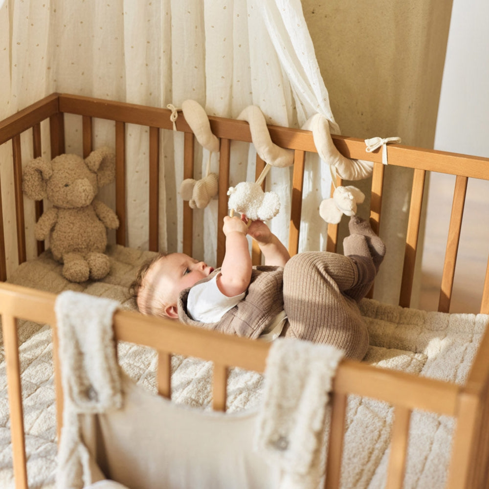 Die Jollein Aktivierungsspirale aus der Elephant Tales Kollektion wurde entwickelt, um die Sinne des Babys zu stimulieren und seine Entwicklung ab den ersten Lebensmonaten zu unterstützen.