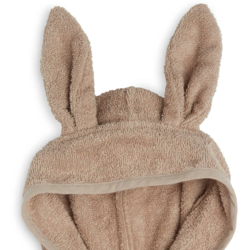 Badekåben har en sjov hætte med ører, som hurtigt tørrer dit barns hår og tilføjer et sødt touch.