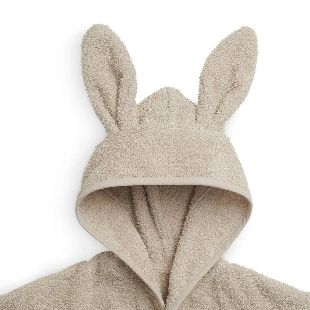 Badekåben har en sjov hætte med ører, som hurtigt tørrer dit barns hår og tilføjer et sødt touch.