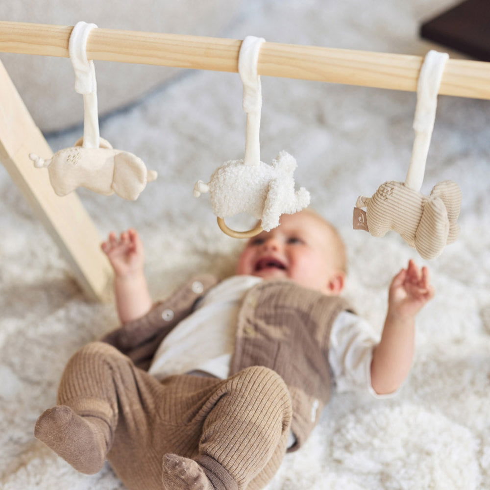 Die Stirnbandspielzeuge von Jollein sind ein bezauberndes Set aus drei Babyelefanten, die mit unterschiedlichen Texturen und Details die Aufmerksamkeit Ihres Kindes auf sich ziehen.