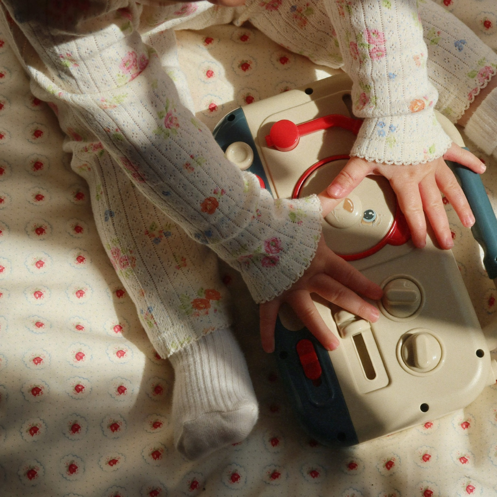 Børneradioen har knapper, der kan trykkes på, drejeknapper og sjove lydeffekter, så den opmuntrer dit barn til at opdage årsag og virkning og øve sine finmotoriske færdigheder.