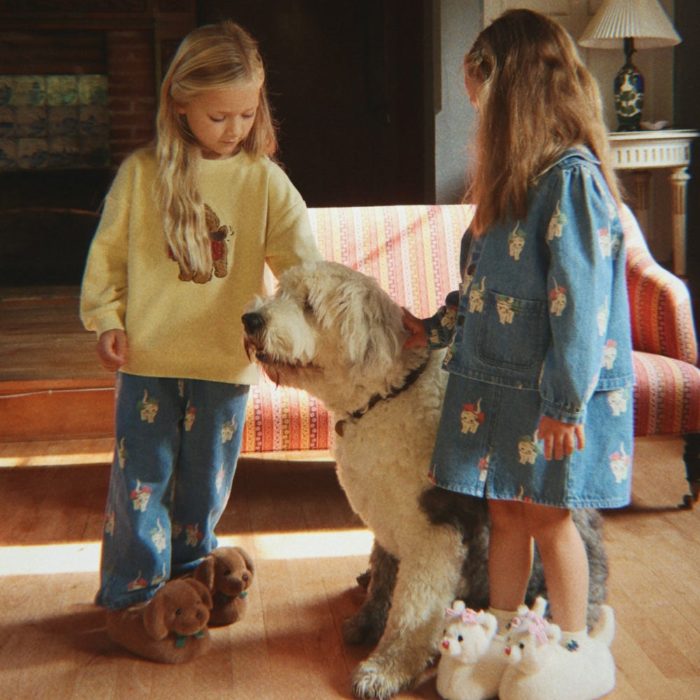 Denimjakken til piger kombineret med Magot-bukserne skaber et sødt, sammenhængende sæt, der vil glæde både den lille fashionista og forældre, der værdsætter stil og komfort.
