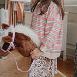 Den elastiske linning gør, at nederdelen til piger sidder perfekt uden at begrænse bevægelsesfriheden, og den løse pasform giver den en let og piget charme.