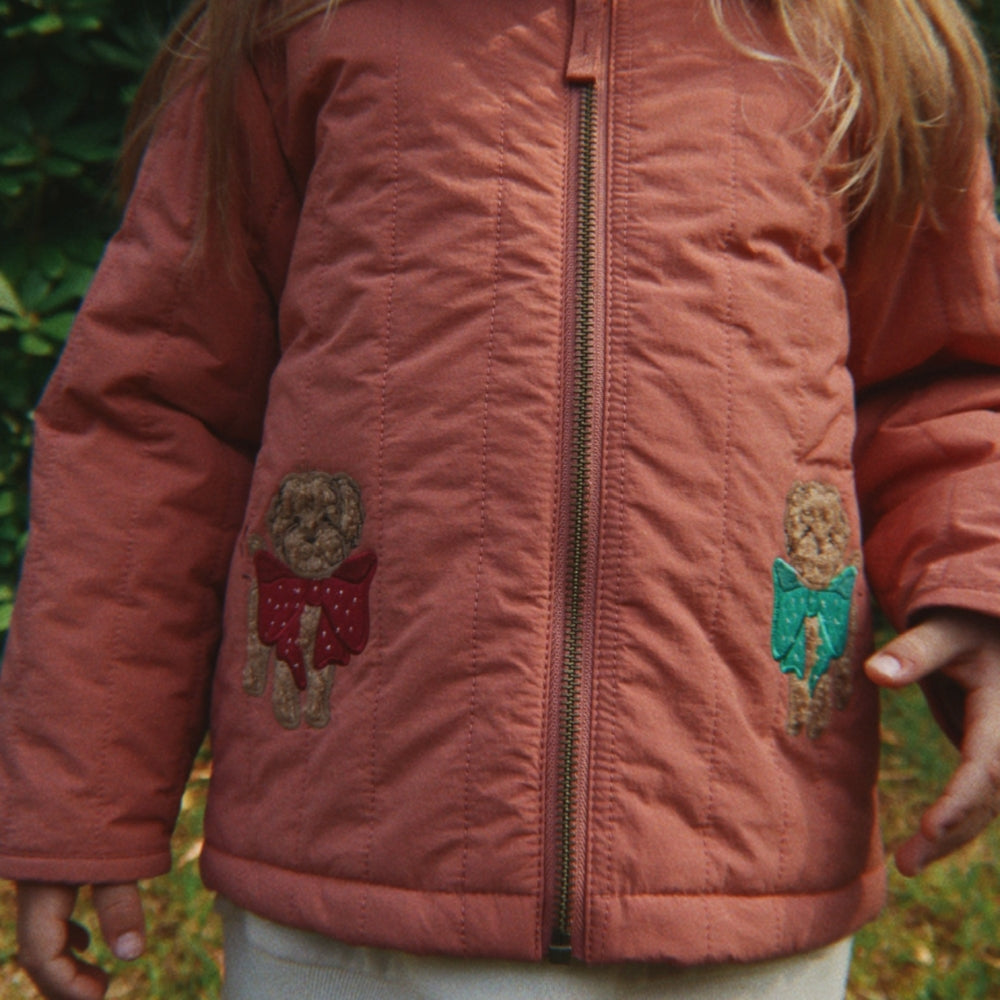 Konges Slojd-jakken til piger har en blød polyesterisolering, der effektivt isolerer mod kulden og samtidig lader huden ånde.