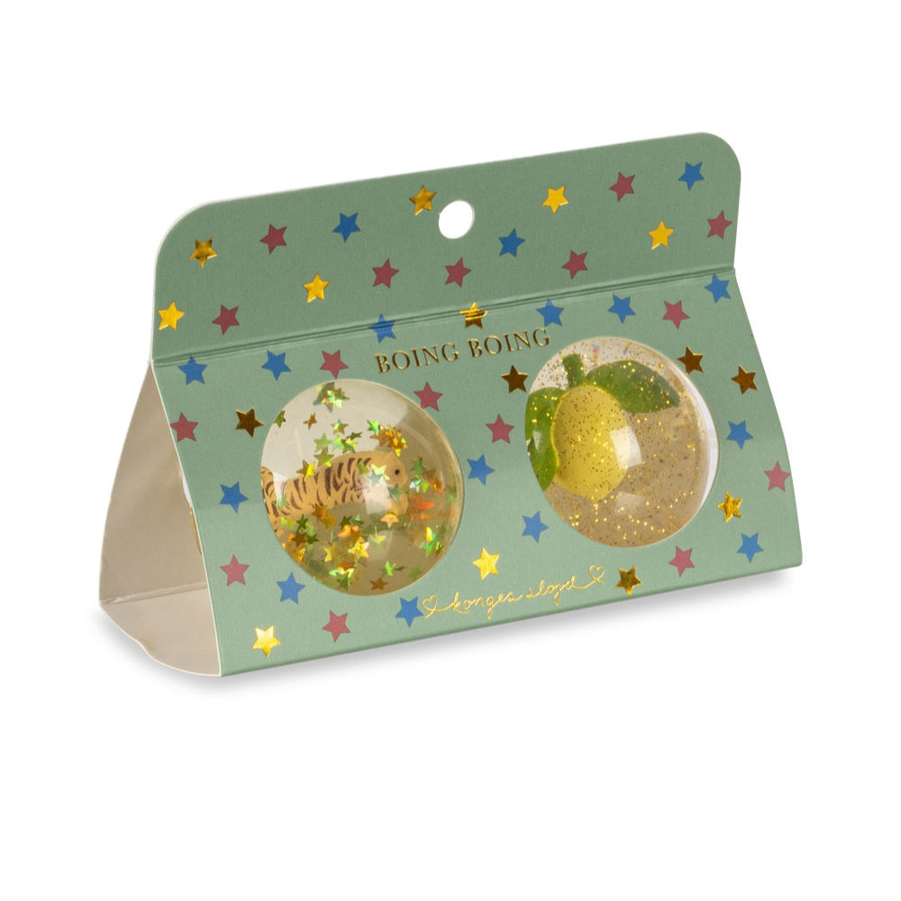 Konges Slojd Kugler med glitter og 3D-figurer Citron/Tiger 2 stk.