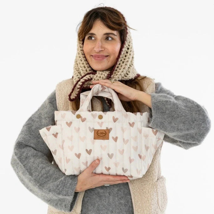 Orthalion quiltet barnevognsorganizer Heartbeat Beige fra La Millou