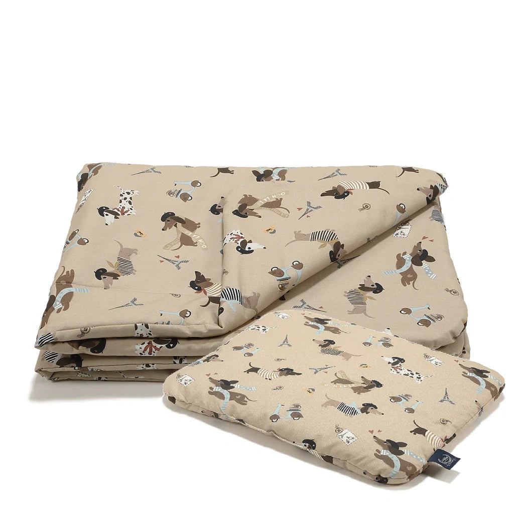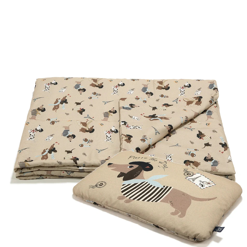 Sengetøjssæt til babyer i størrelse L med Pierre The Dog-design fra La Millou.