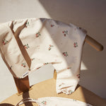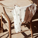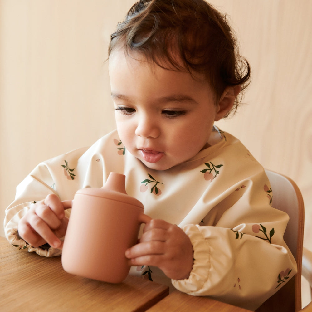 Liewood-hagesmækken med ærmer har et smukt beige ferskenmotiv.