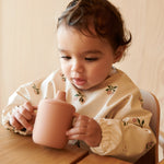 Hagesmækken med ærmer er designet, så babyen kan nyde at spise uden at få tøj til at blive snavset.