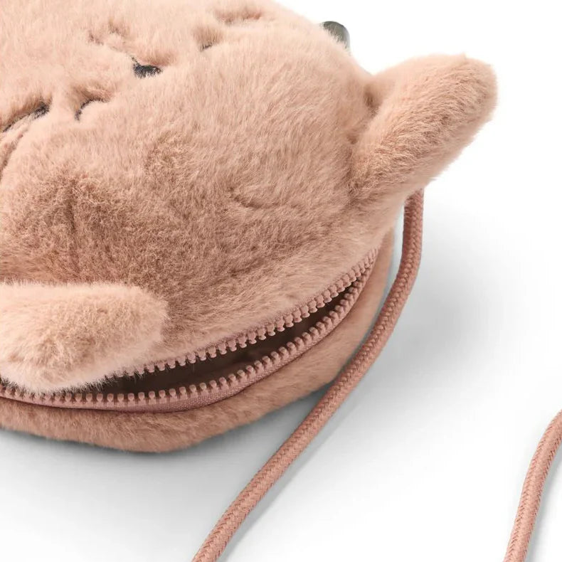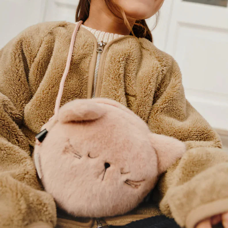 Det bløde, fluffy materiale og det karakteristiske kattehoved gør den til noget helt særligt blandt andre børnehåndtasker.