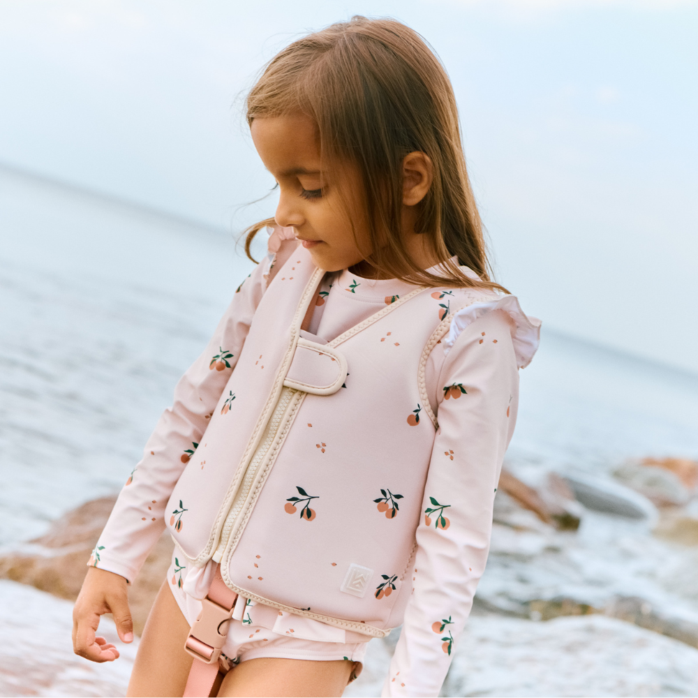 Die Liewood Schwimmweste in fröhlichen Sommermustern hilft den Kleinen, sich an das Wasser zu gewöhnen und sich bei ihren ersten Spielen im Schwimmbad oder am Meer sicherer zu fühlen.