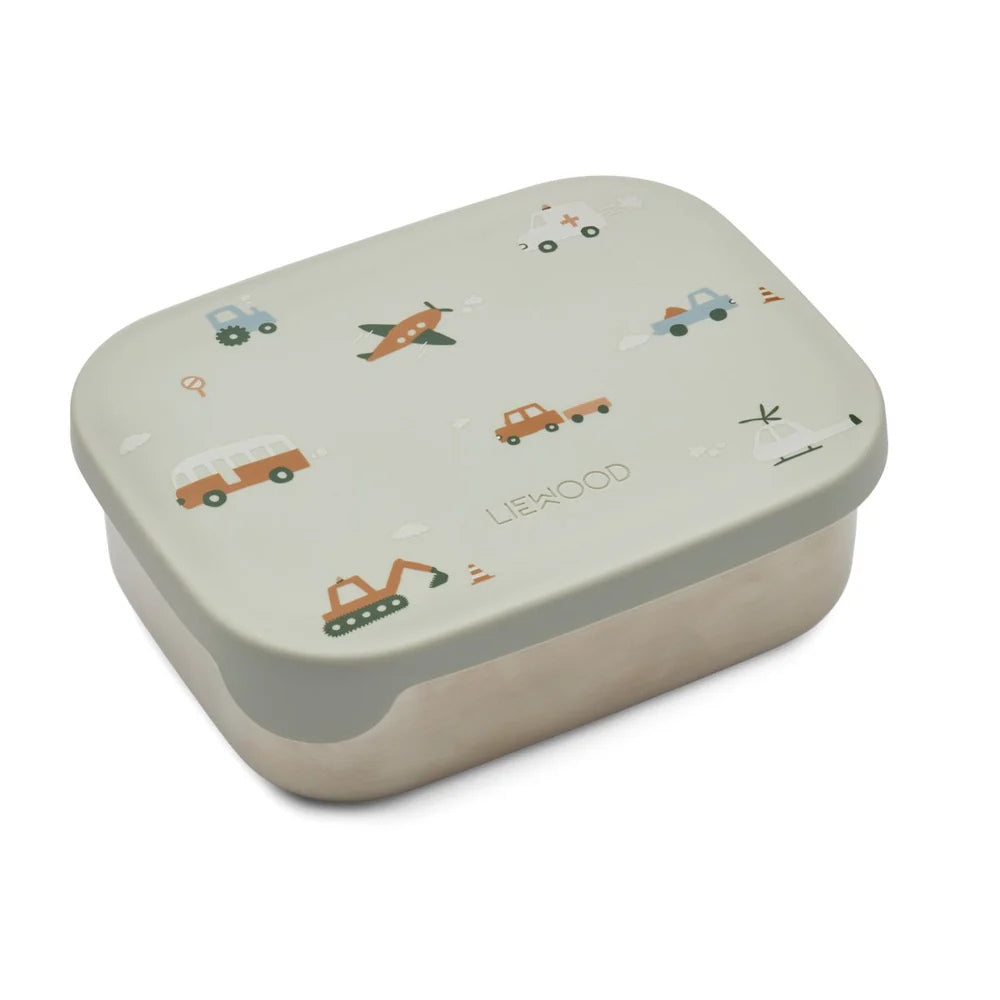 Liewood madkasse til børn Arthur Trykte køretøjer/duveblå mix 900 ml