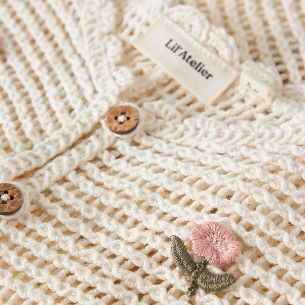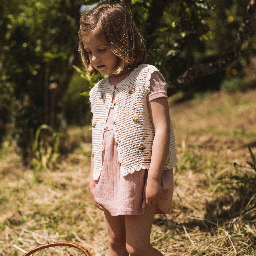 Babyvesten fra Lil' Atelier er et hyggeligt, blødt lag til din baby, perfekt til køligere dage derhjemme og på farten.