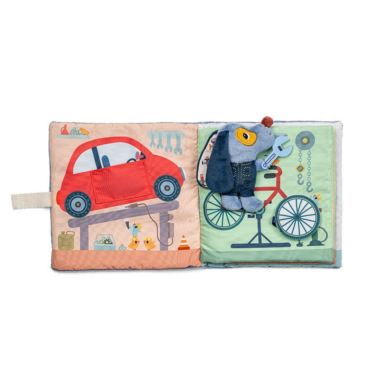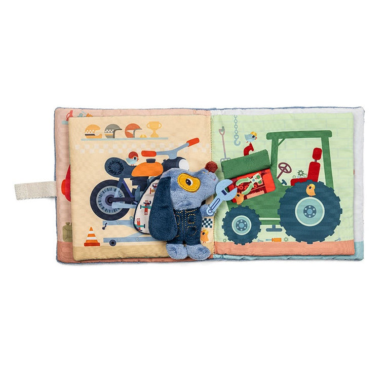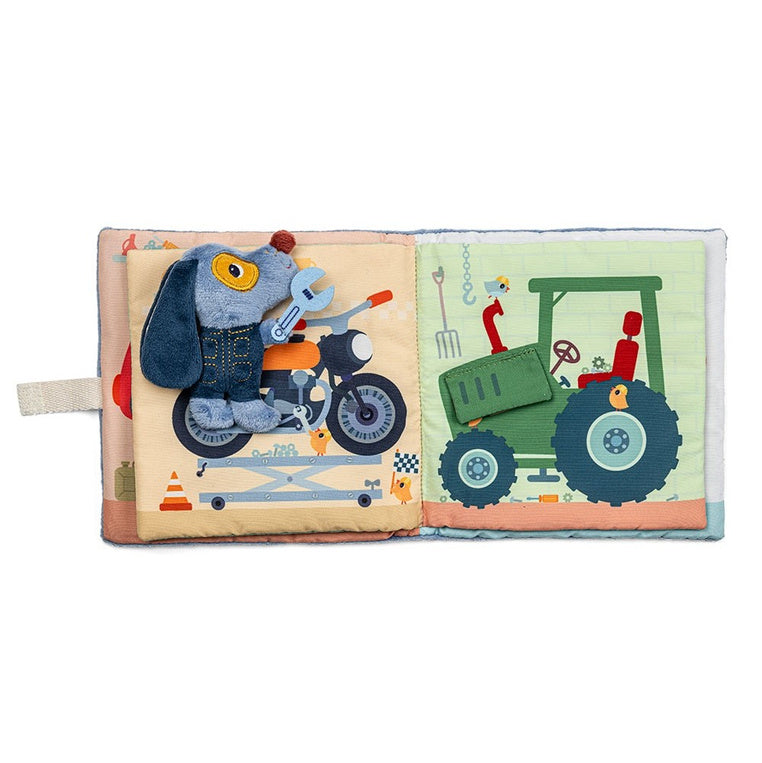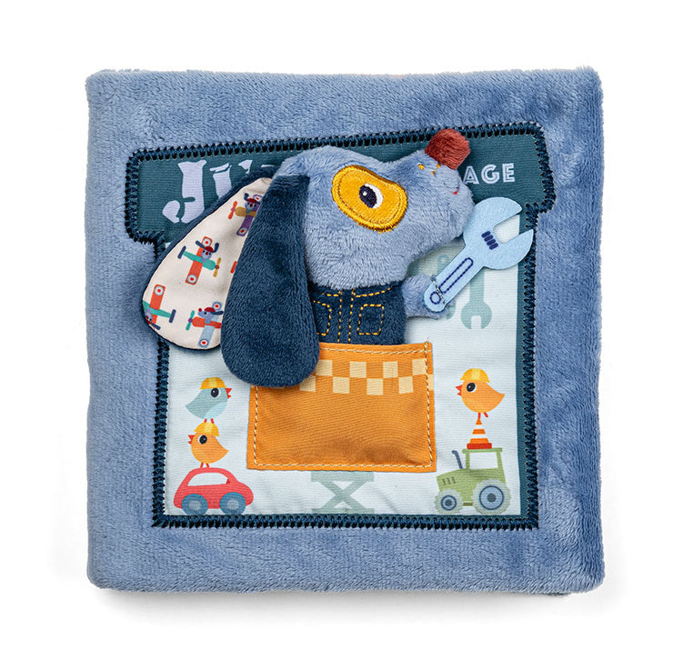 Den bløde bog Jules Dog Garage fra Lilliputiens er et særligt tilbud til de små, der lige er begyndt på deres eventyr med at læse.