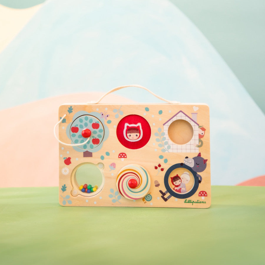 Lilliputiens Træmanipulationsbræt til børn kuffert Rødhætte 12 m+