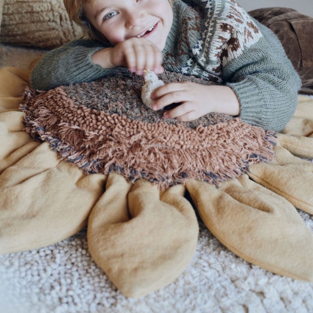 Sunflower Floor Cushion fra Lorena Canals er et unikt dekorativt element, der giver dit interiør et naturligt, rustikt præg.
