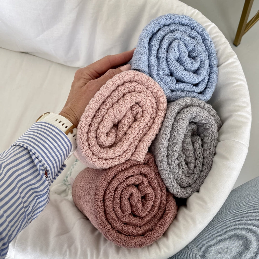 Merinouldtæppet fra LullaLove giver varme ikke kun om vinteren og efteråret, men også på en kølig forårsdag og en kold sommeraften.