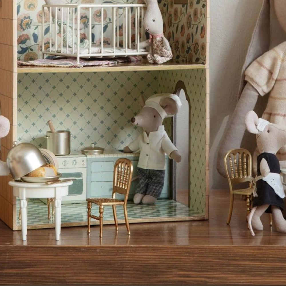Maileg-stolen passer til alle borde, der har den rigtige størrelse til mus.