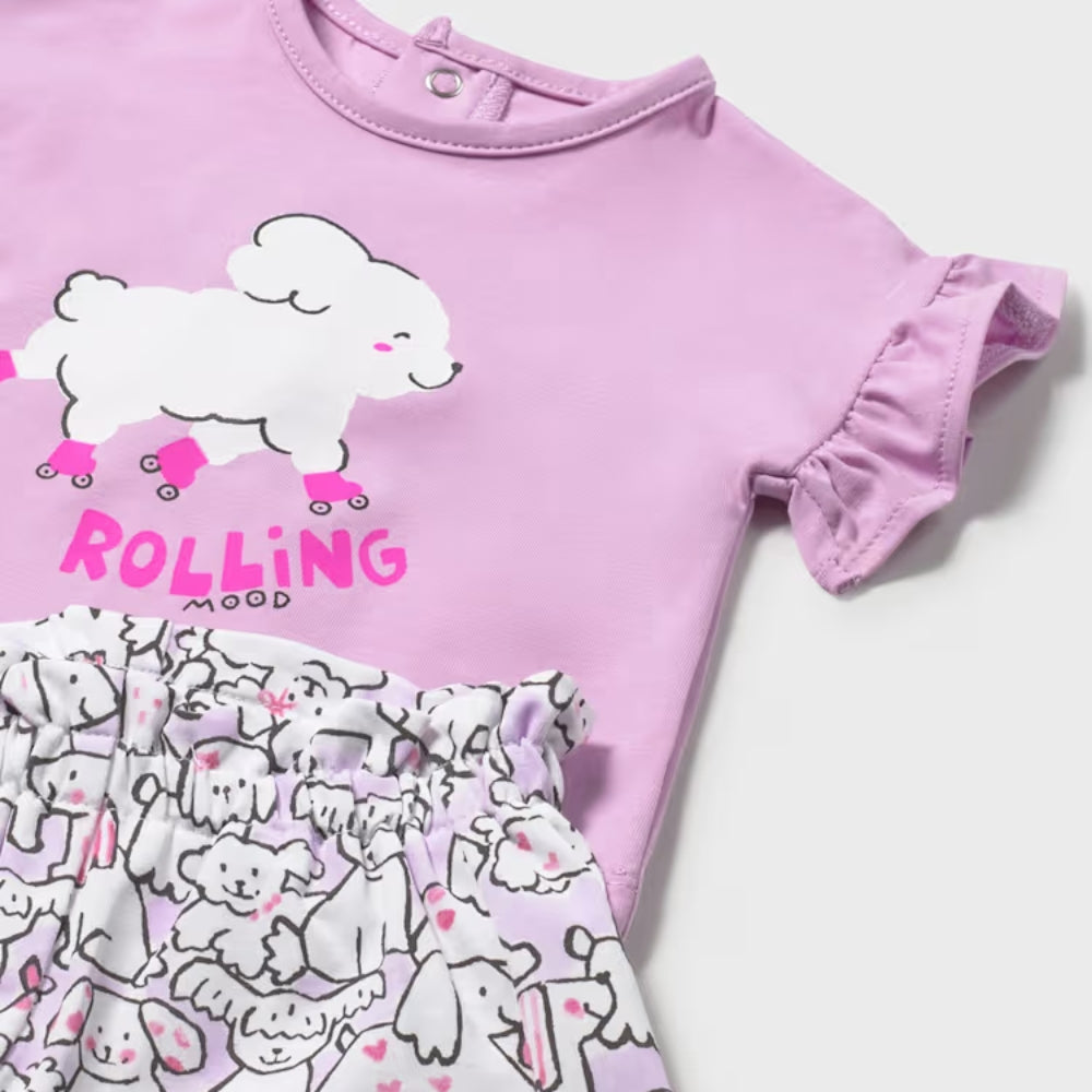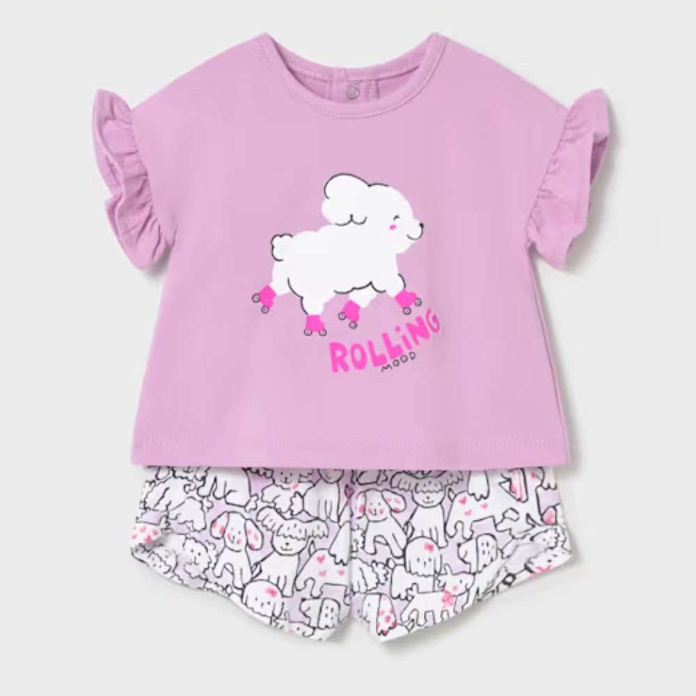 Mayoral 2-delt sæt til piger med T-shirt og shorts Lilla