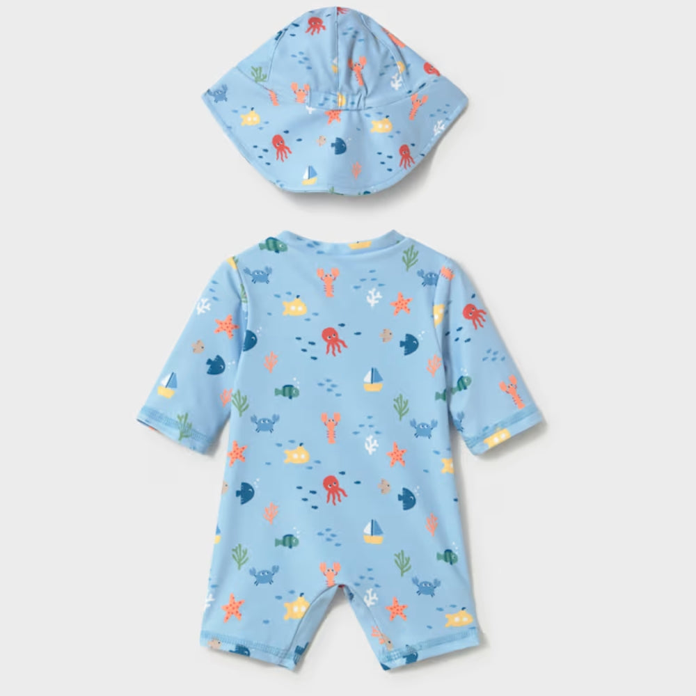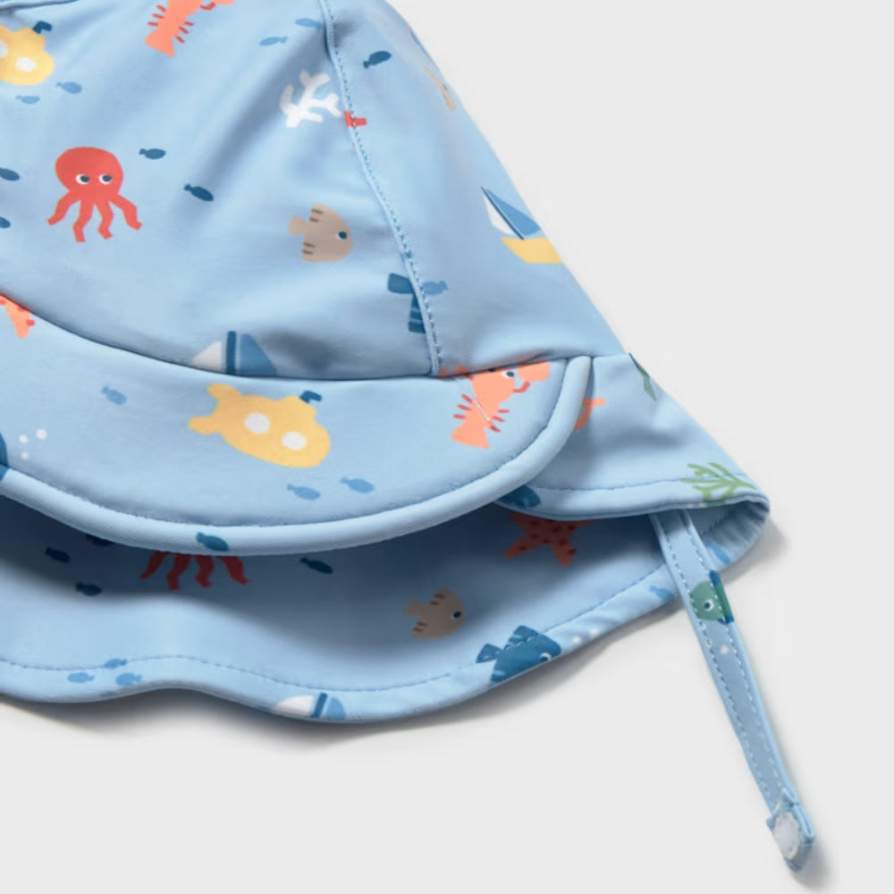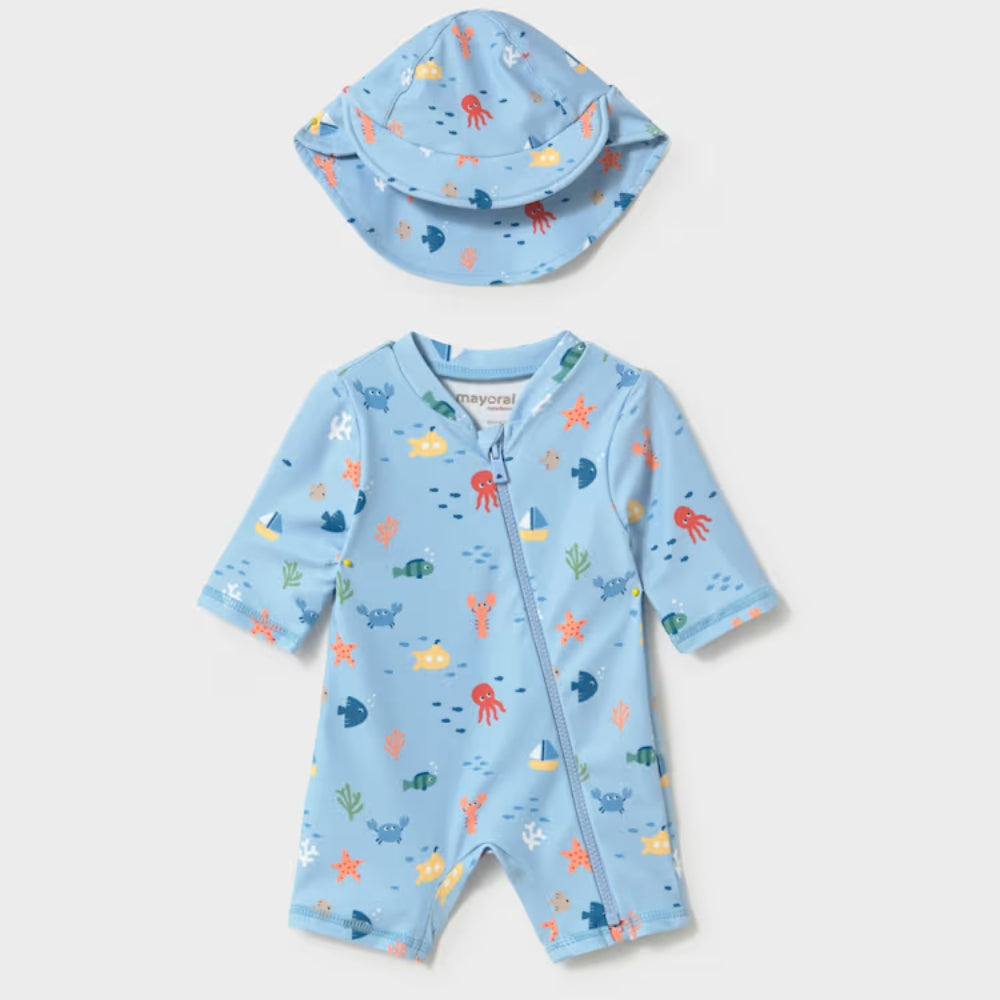 Mayoral baby 2-delt badetøjssæt med hue og UV-blå jumpsuit