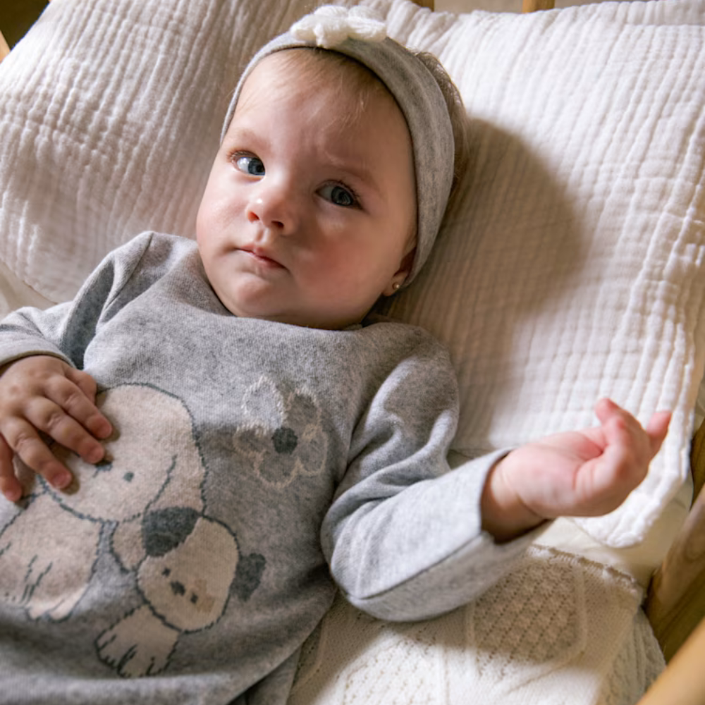 Wrap-kjolen fra Mayoral er et sødt og behageligt sæt til en nyfødt baby – perfekt til de første udflugter, familiefotos og særlige lejligheder.