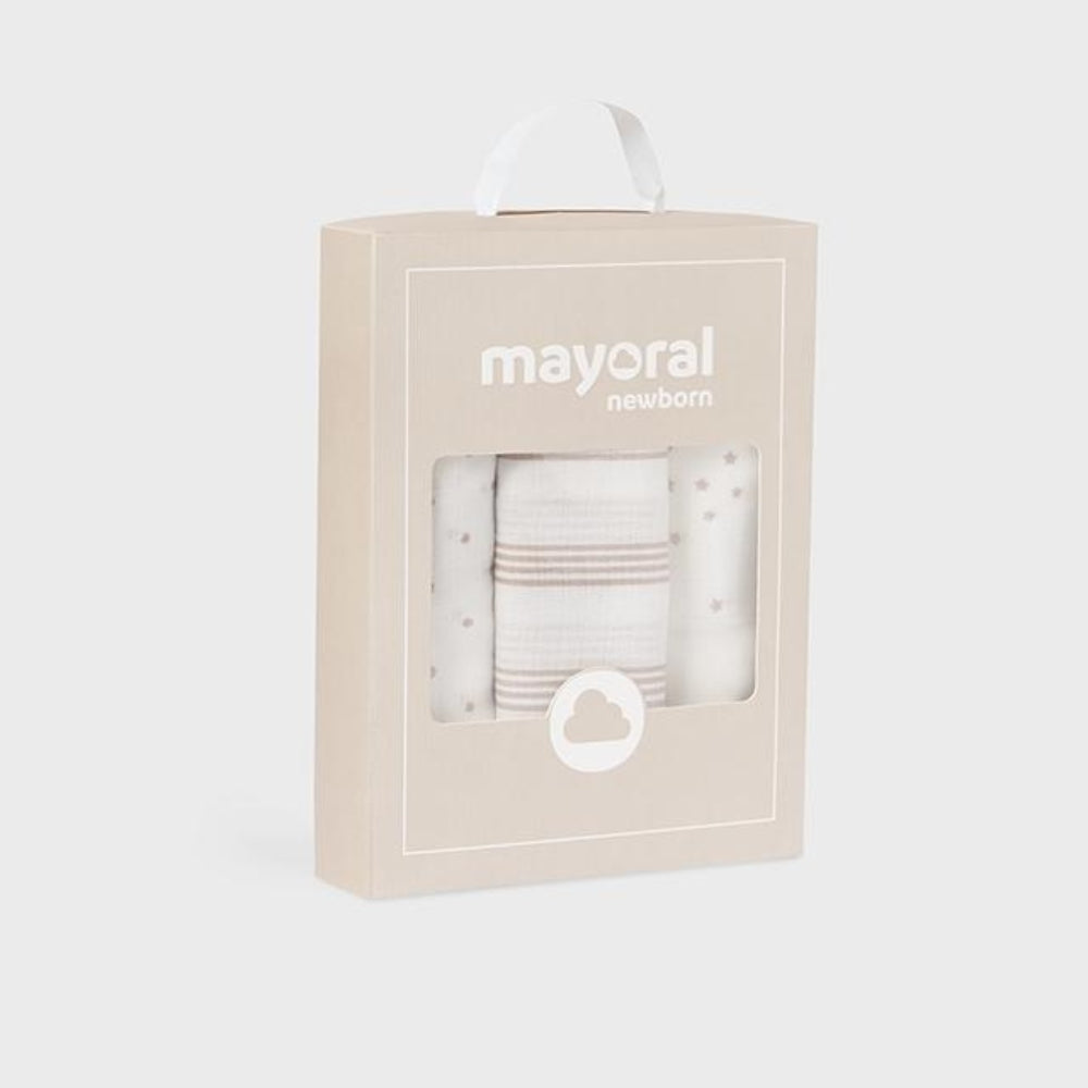Takket være det høje kvalitet af materialet er Mayoral-bleerne perfekte til amning, bleeskift og også som et let tæppe.