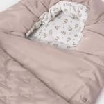 Indersiden af soveposen er foret med blødt 100 % bomuldsfor, som er skånsomt mod babyens hud, og polyesterfyldet giver optimal varmeisolering.