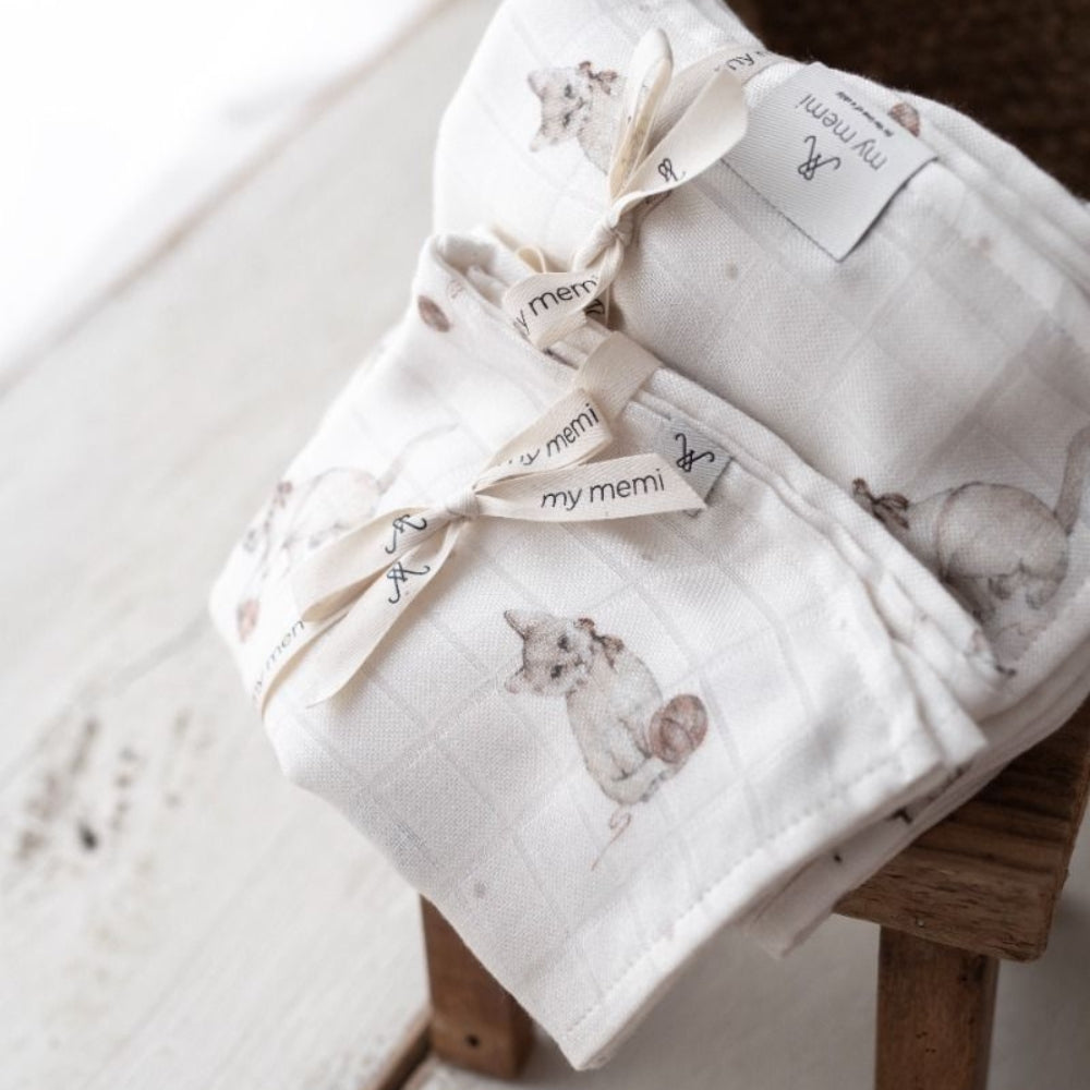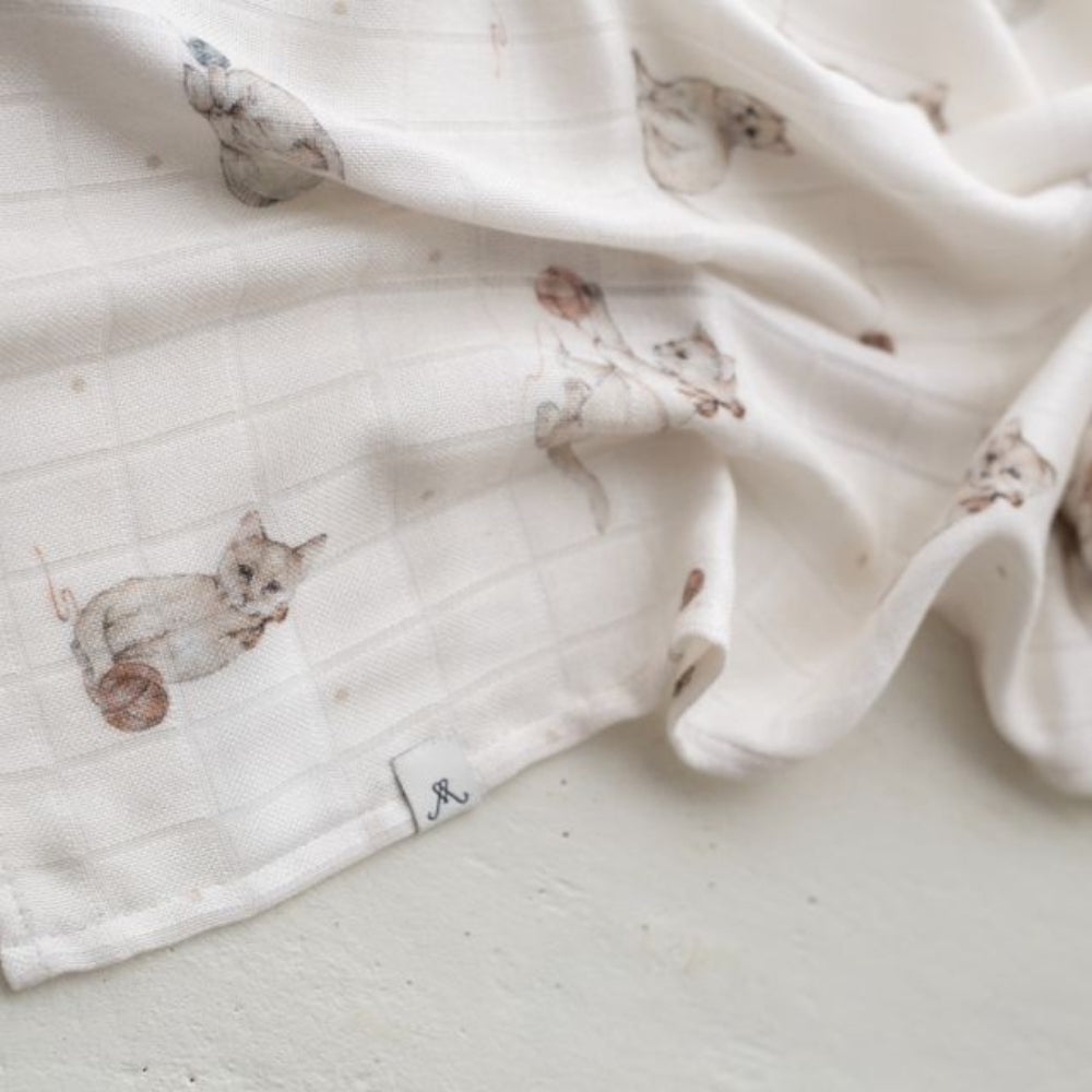 Memi Bambus-muslin-sengetæppe med killinger 120 x 120 cm