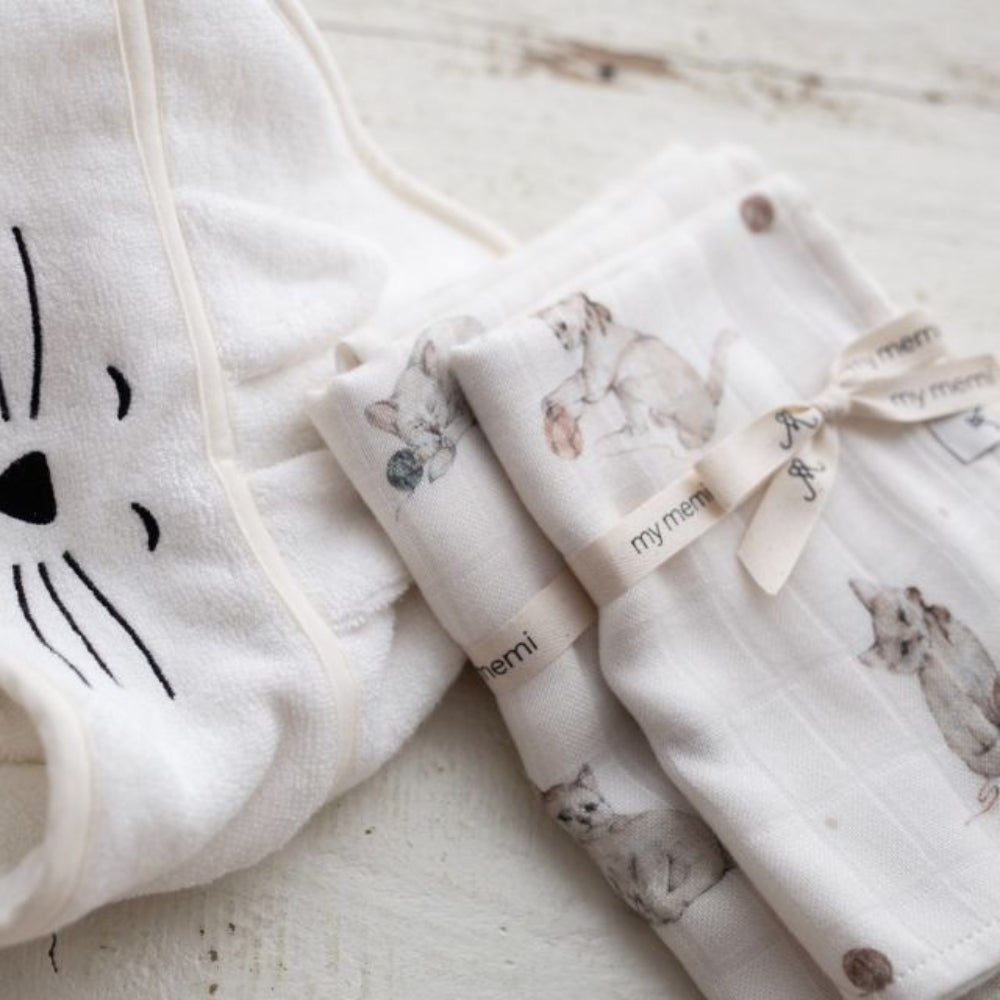 Bambusmuslin-sengetøjet 120x120 cm til killinger fra Memi er ekstremt blødt og behageligt at røre ved.