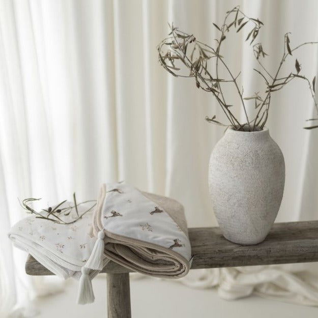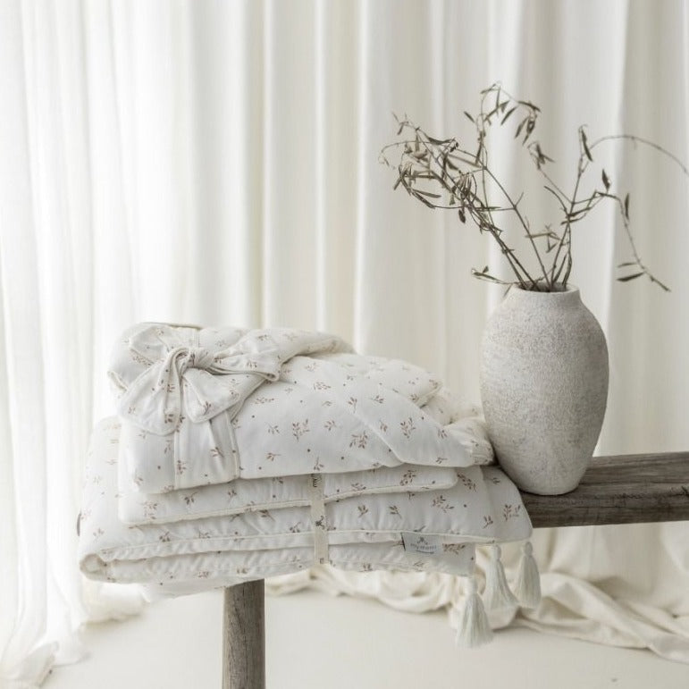 Bambus-sengetøjet fra Memi's Twigs-kollektion måler 75 x 100 cm og er ekstremt blødt og behageligt at røre ved.