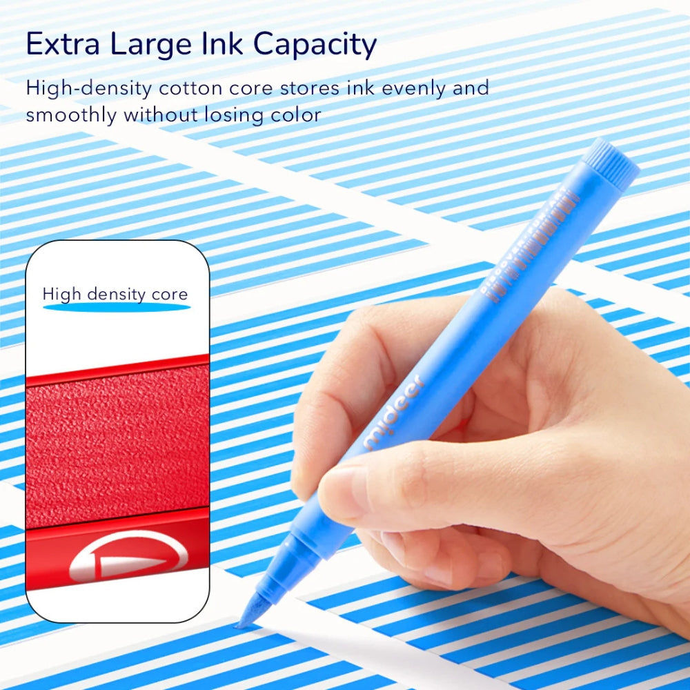 Mideer-markørsættet indeholder op til 60 akrylmarkører med en blød penselspids, så du kan skabe både tynde og tykke streger.