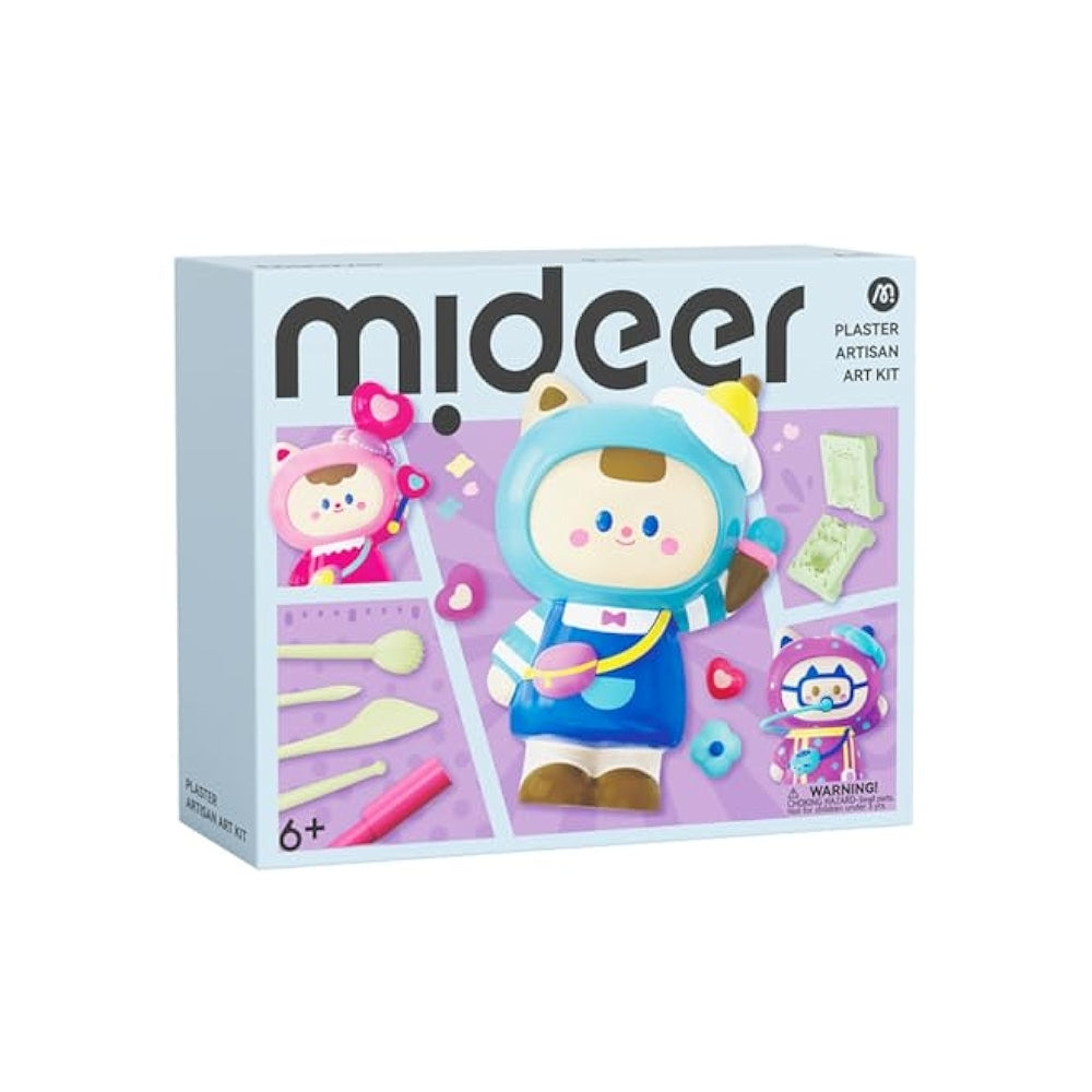 Mideer børnekunstsættet indeholder alt, hvad du behøver for at komme i gang med dit skulptur- og maleeventyr: forme, gips, maling, tuschpenne og dekorationer. Hvert trin – fra forberedelse af formen til dekorering – udvikler koncentration, tålmodighed og præcision.