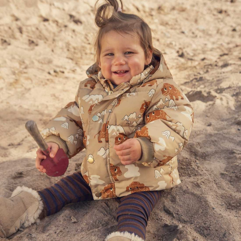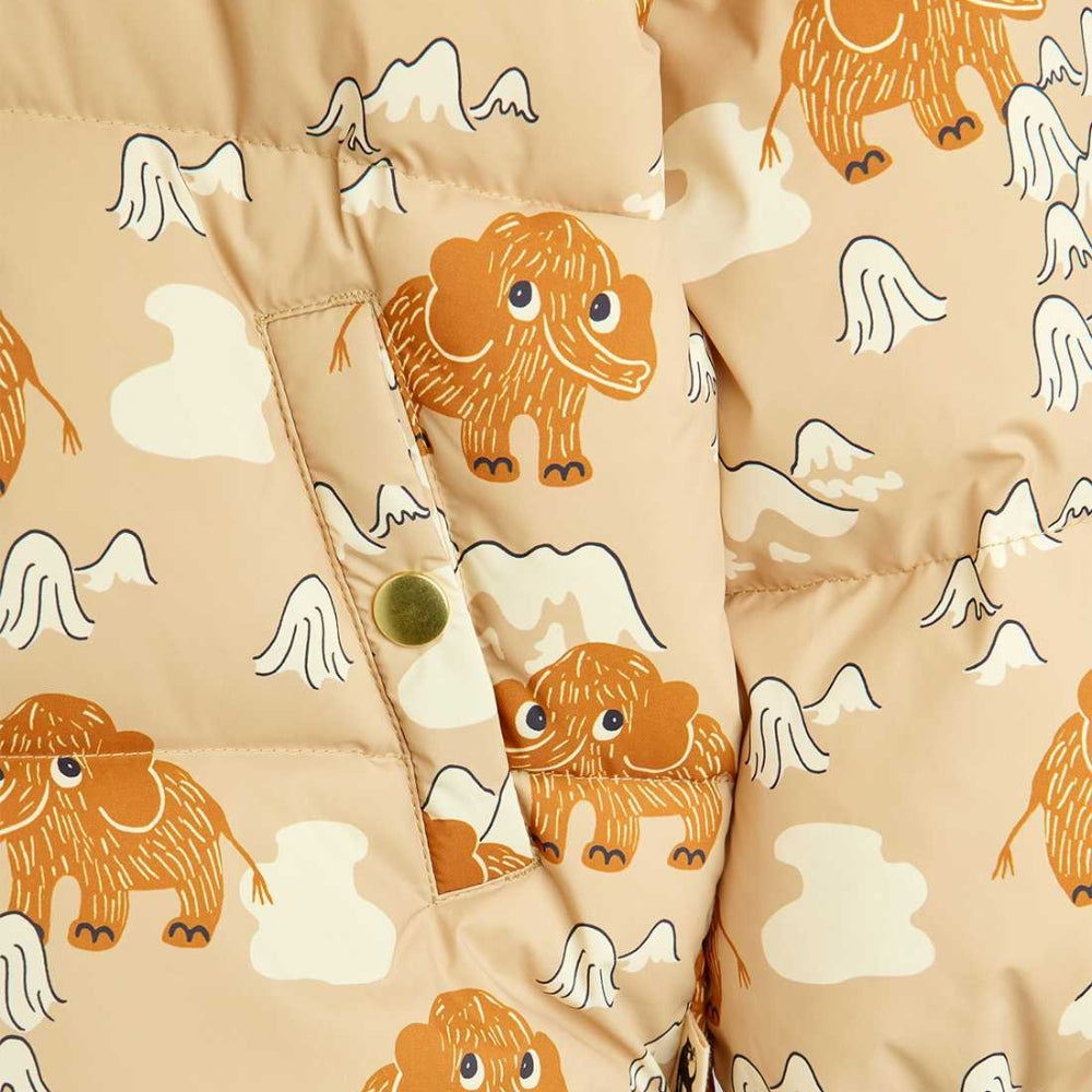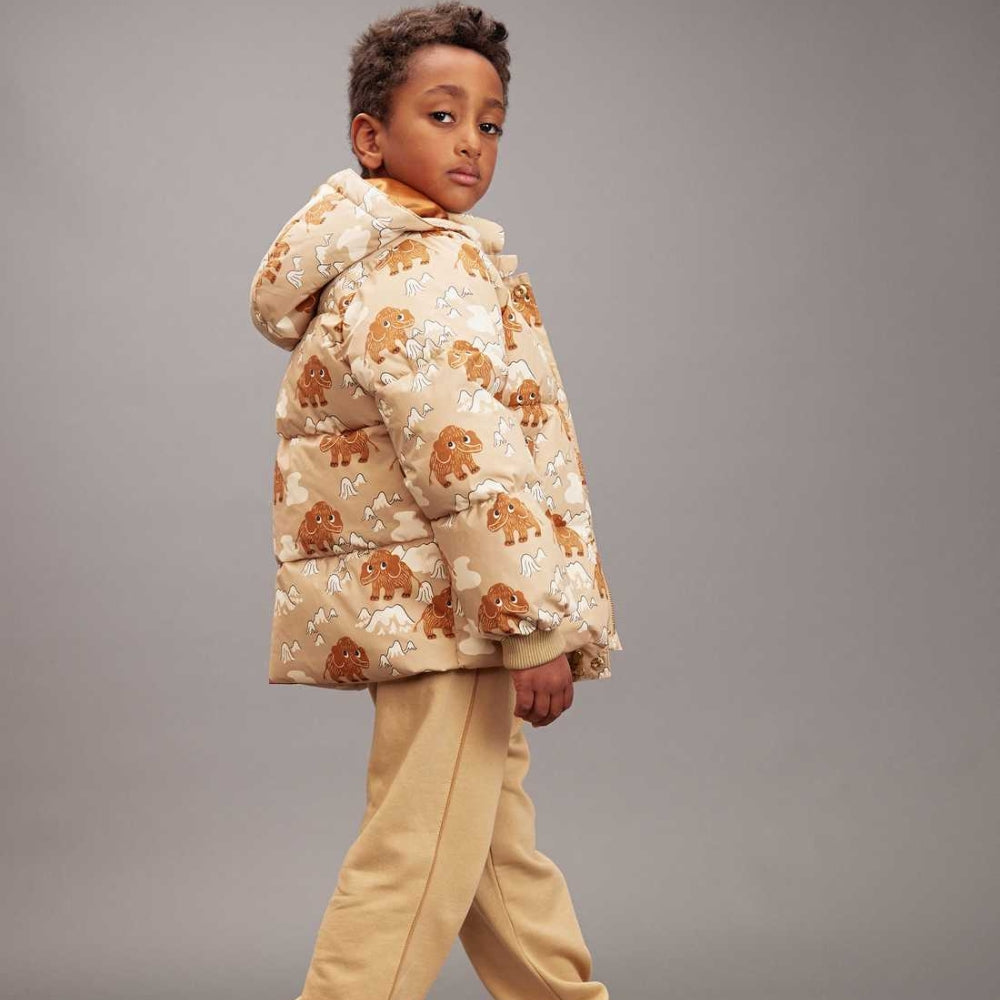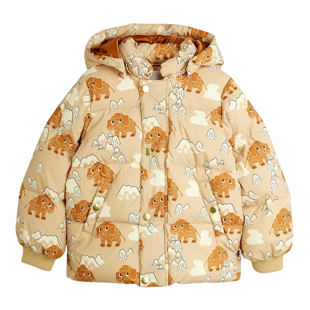 Børnedunjakke med hætte Mammoths aop fra Mini Rodini.