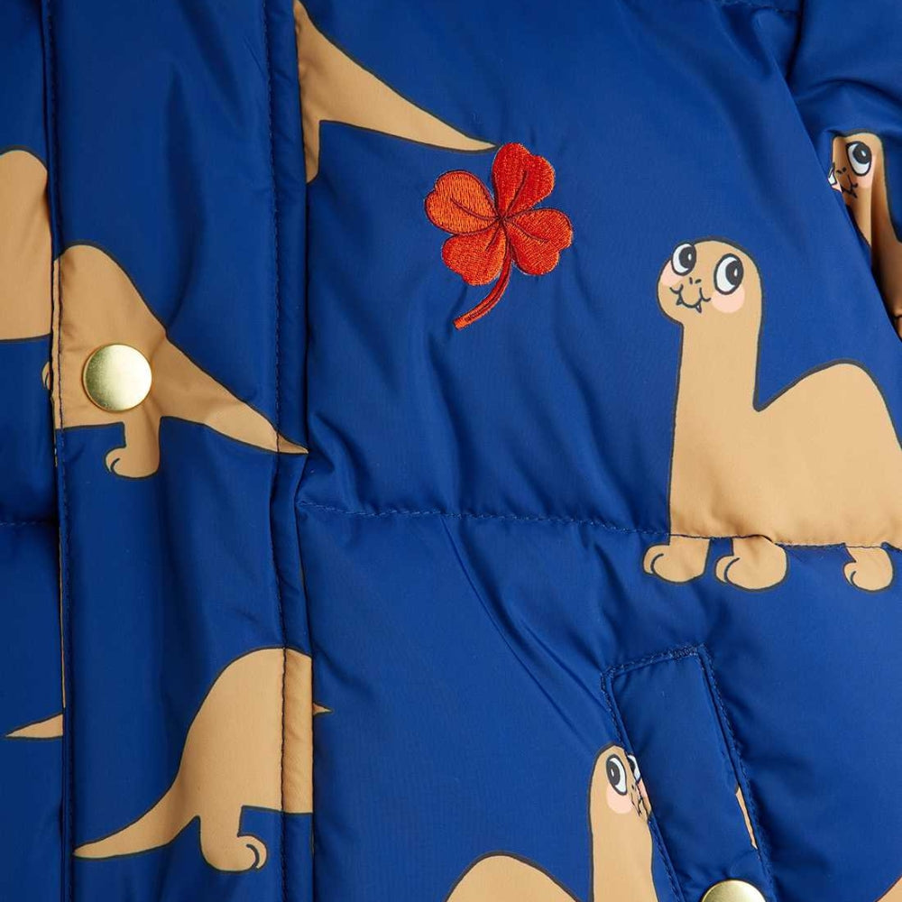 Denne dunjakke til børn fra Mini Rodini er det perfekte valg til vinterdage, da den kombinerer komfort, varme og originalt design.