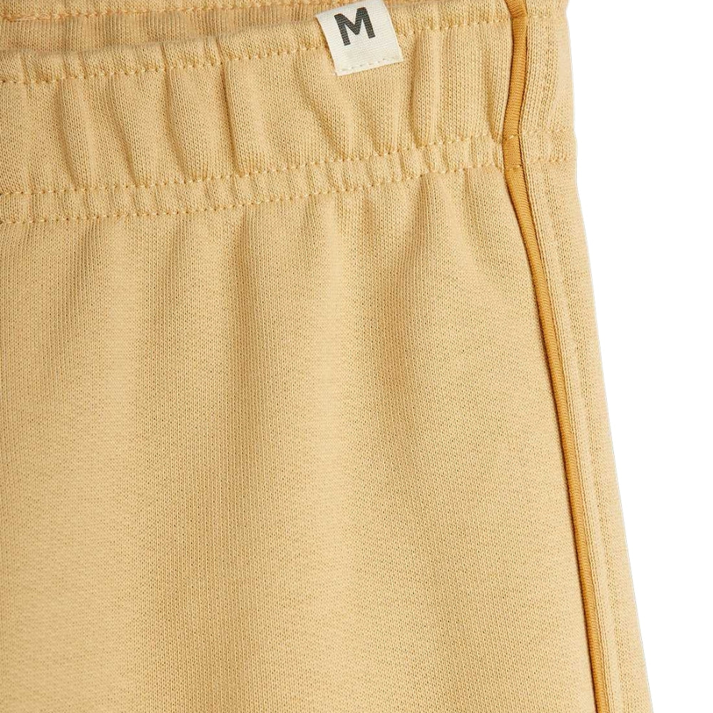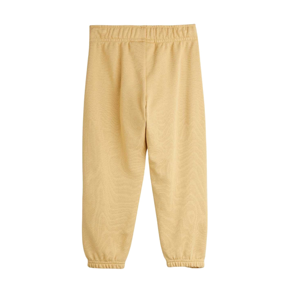 Børnesweatpants i en neutral beige nuance kan nemt kombineres med andre beklædningsgenstande for at skabe den alsidige og behagelige styling, der er karakteristisk for Mini Rodini-mærket.