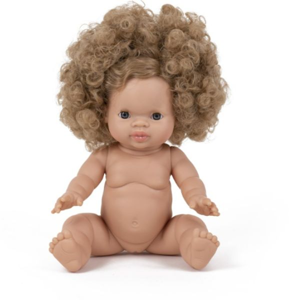 Anaïs-babydukken har blågrå øjne og langt, bølget blond hår, der dufter af vanilje.
