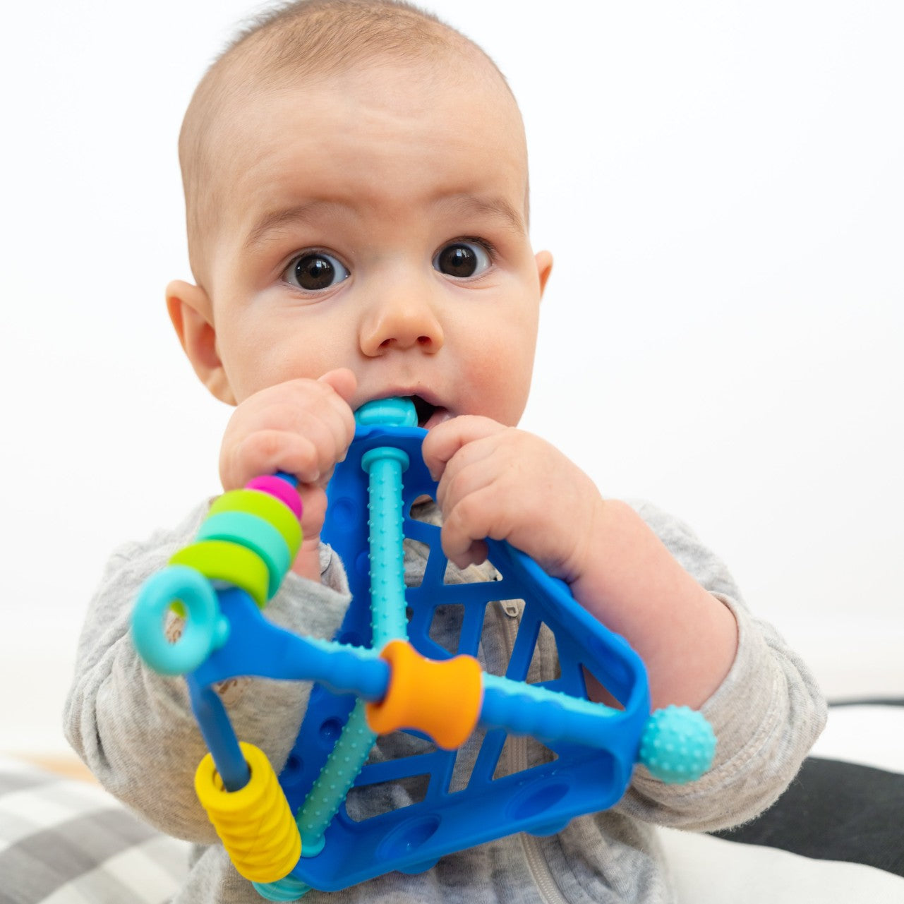 De runde kugler i hjørnerne af pyramiden er ideelle til småbørn, der er ved at få tænder.