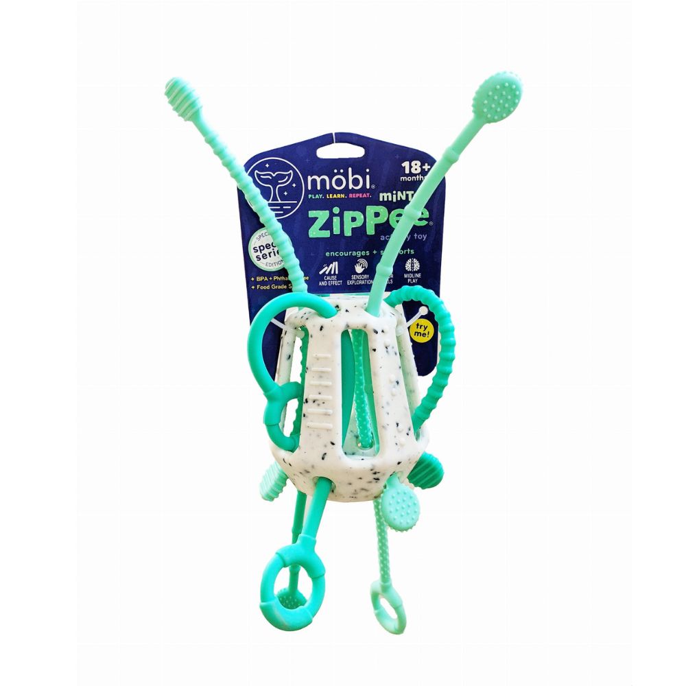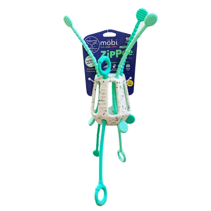 Med sit smarte design og forskellige stimuli giver Zippee sensorisk træklegetøj fra Mobi småbørn uendelig sjov, samtidig med at de udvikler deres sensoriske og motoriske færdigheder.